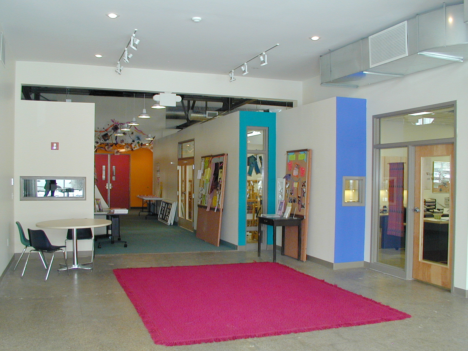 The Textile Center is a national center for fiber art. Honoring textile traditions, the Center inspires widespread participation in fiber art through its classes, discussions and exhibitions. Flannery’s work created an airy pleasant environment for classrooms and exhibition spaces.